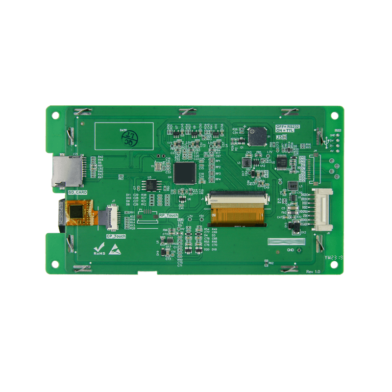 The 5inch 800×480 TFT LCD screen with HMI board can be used for Medical, Hand-held Device, Industrial, Energy Storage, EV-chargers, Forklift, Agricultural Equipment, Smart-Home etc.